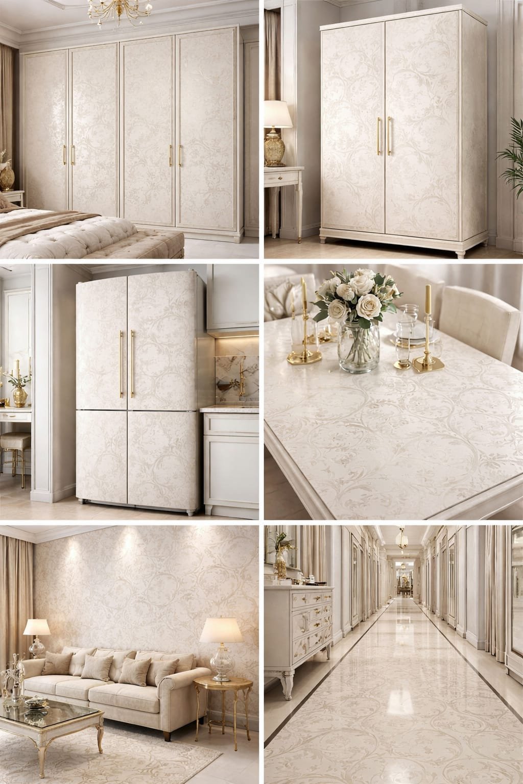 Falish Pearl Scroll Furniture Film Wallpaper for Cupboard Door, Almirah, Fridge, Tabletop, Wall, Floor DIY & Revouation Project:24×288 inch, Self Adhesive